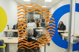 La struttura si sviluppa su una superfice di oltre 200 mq suddivisi in: tre aule didattiche attrezzate per soddisfare le esigenze della didattica frontale e le esercitazioni pratiche; un laboratorio informatico con 20 postazioni multimediali; una sala per l’orientamento dedicata agli incontri di orientamento e accompagnamento al lavoro e consulenza su specifiche esigenze (es. Programma Garanzia Giovani, richiesta DID on line, redazione curriculum vitae, consultazione vacancies, ecc); un spazio dedicato all’accoglienza con area reception e area ristoro; una sala riunioni, ufficio di direzione e ufficio amministrazione.